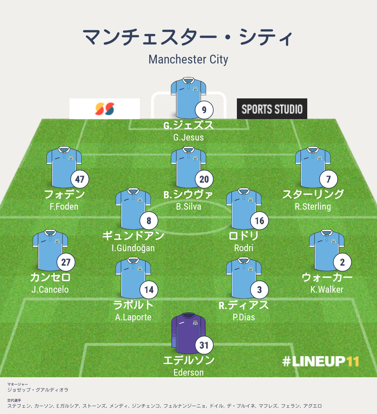 更に後半序盤過ぎに再びカンセロのクロスをB・シウヴァが頭で押し返したボールを押し込んだG・ジェズスが追加点!
